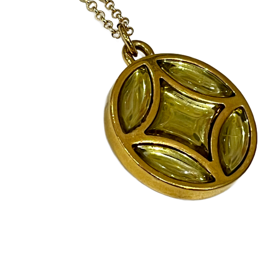 Lemon Crystal (Only) Rounded Flower Logo 2 sided Charm on Necklace