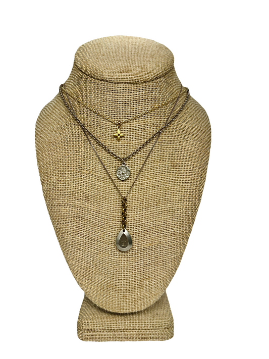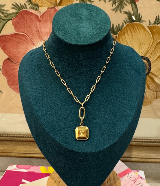 Mixed Metal Louis Vuitton Teardrop Charm on Necklace