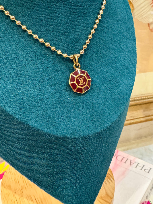 Merlot mini Octagon Charm Pendant on Bead Ball Chain