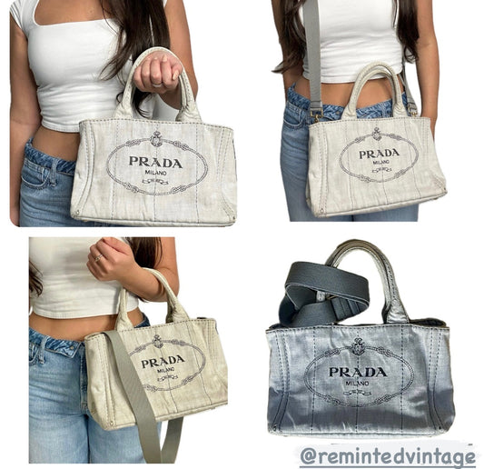 Vintage Whitewashed Gray Denim Canapa Tote 2Way + Extra Strap