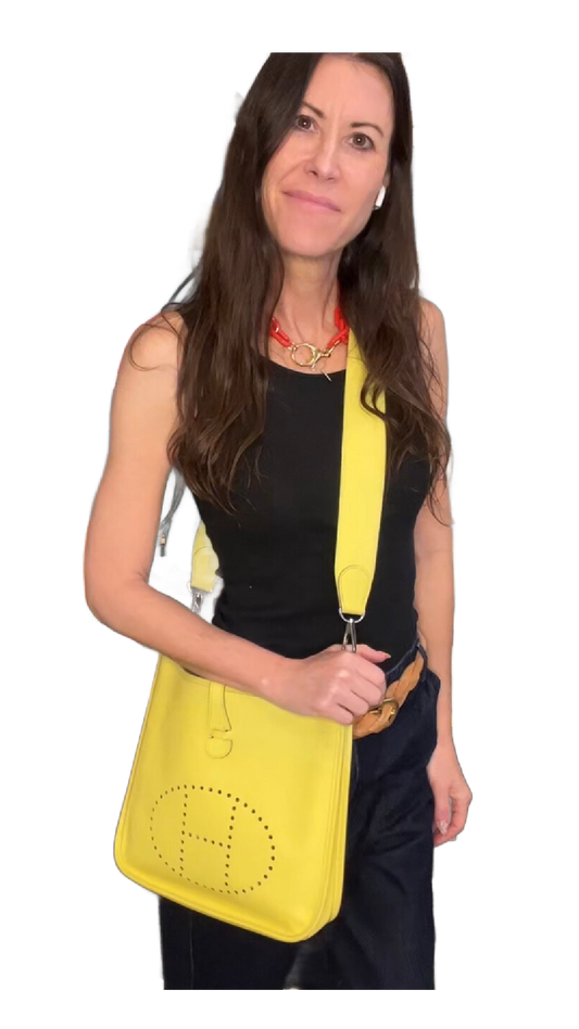 RARE Color - HERMES Evelyn 1 Yellow Veau Epsom Leather Shoulder Crossbody